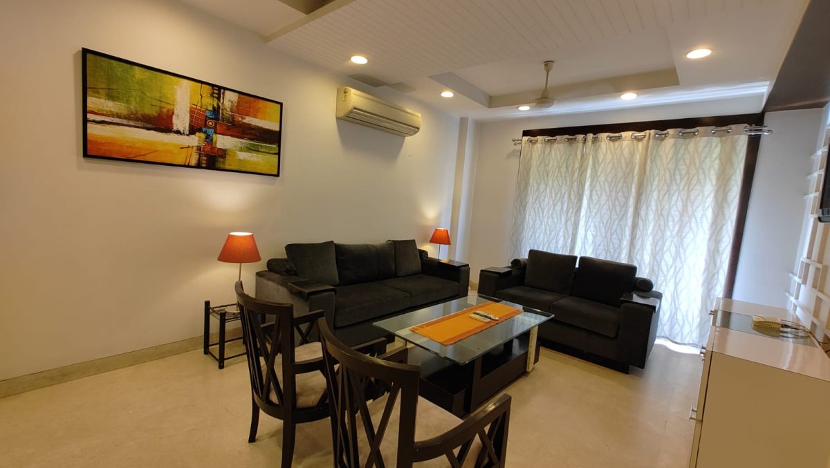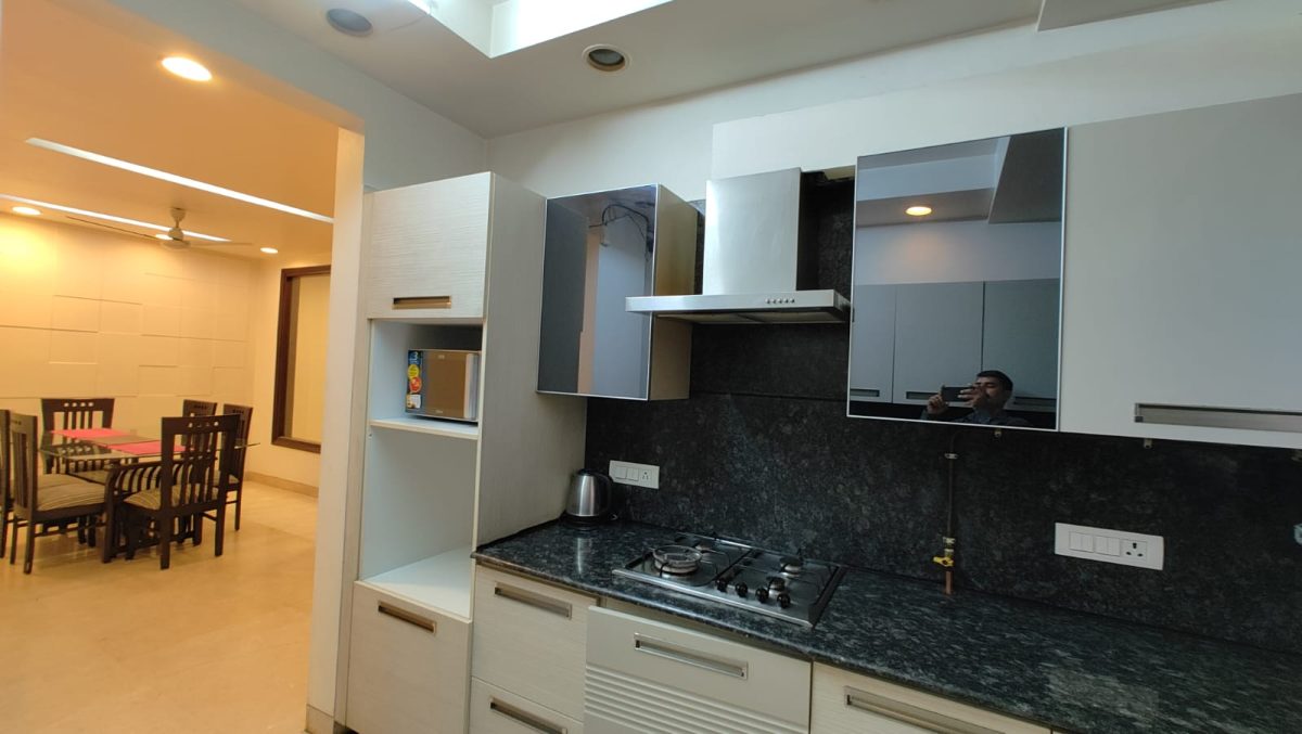 Evergreen Apartments offers 3 bedroom hall & kitchen (BHK) Service Apartment in Saket, New Delhi for short/long term is spread over 1500 square feet and has 3 spacious bedroom with attached bathroom and front side balcony, large living and separate dining area and fully equipped modular kitchen is located in a nice peaceful area with big park on the corner and walking distance from Saket and Malviya Nagar Metro Stations. Select Citywalk, Dlf Saket Malls ,Max Hospital Saket are nearby.