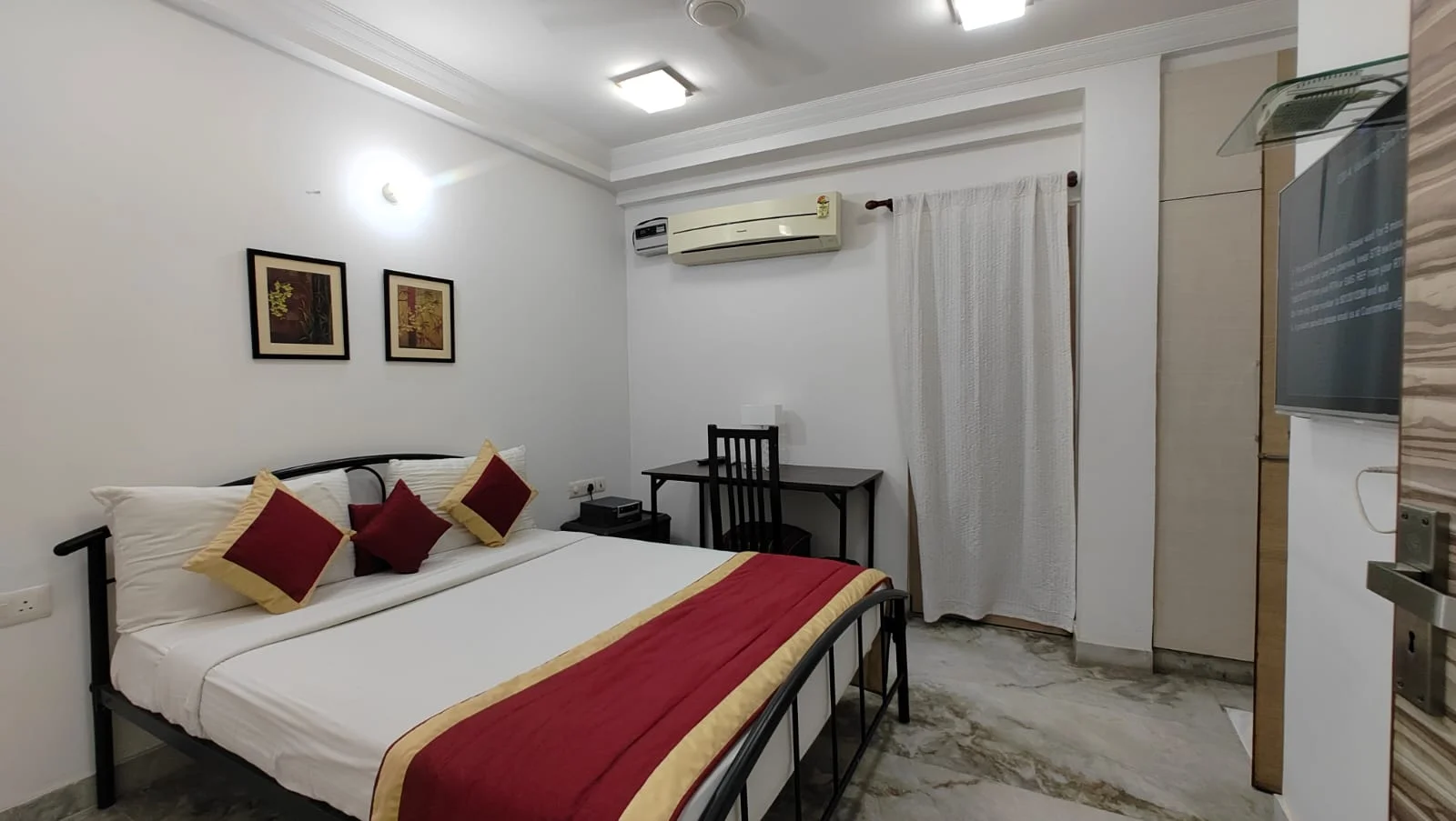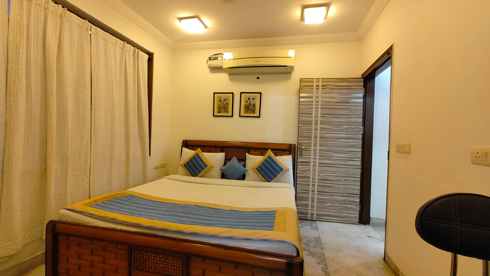 Evergreen Apartments offers 3 bedroom hall & kitchen (BHK) Service Apartment in Saket, New Delhi for short/long term is spread over 1500 square feet and has 3 spacious bedroom with attached bathroom and front side balcony, large living and separate dining area and fully equipped modular kitchen is located in a nice peaceful area with big park on the corner and walking distance from Saket and Malviya Nagar Metro Stations. Select Citywalk, Dlf Saket Malls ,Max Hospital Saket are nearby.